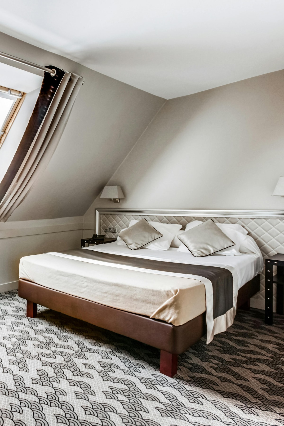 Nuestra luminosa habitación clásica de 14 metros cuadrados ofrece una vista impresionante de la avenida de Tourville. Disponible para una o dos personas, esta encantadora habitación te proporcionará comodidad y suavidad para una buena noche de sueño. ¡La vista, la atención al detalle, la armonía de colores y materiales seguramente te complacerán! Estas habitaciones no permiten la adición de una cuna.