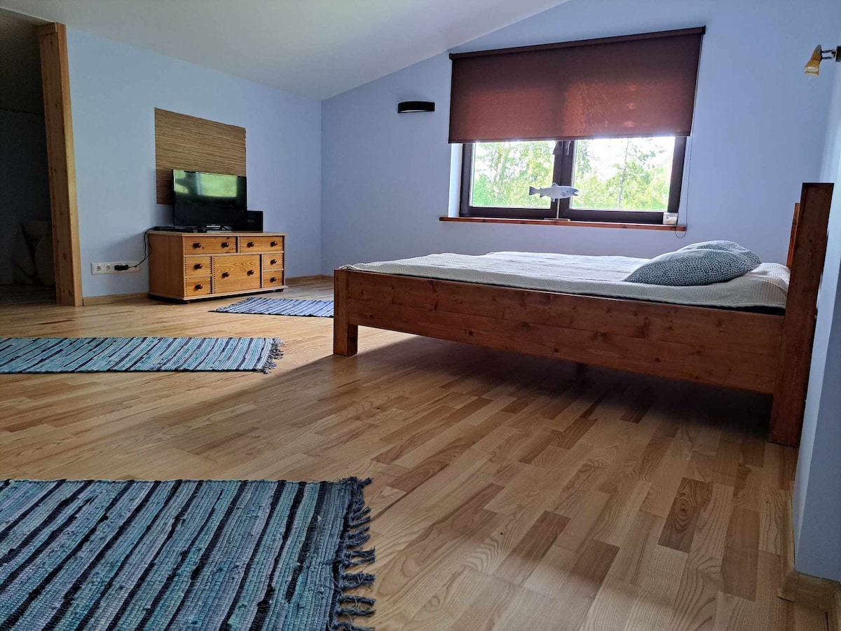 Apartamento soleado y limpio en el pequeño pueblo de Azeri, muy tranquilo, las ventanas dan al campo y al bosque, se tarda de 15 a 20 minutos a pie hasta el mar, pero la playa es salvaje, ahora ha comenzado a ser ajardinada, la tienda está a 200 m, el balcón, Internet, cómodos lugares para dormir. El pueblo tiene toda la infraestructura, un gimnasio, una biblioteca y habla ruso. ¡Reserva natural cercana, dunas, castillo! Hay bosques y muchos animales y aves: liebres, zorros, castores, corzos, alces, urogallos, gansos salvajes, cormoranes. Buenos autobuses. ¡Reserva con anticipación!