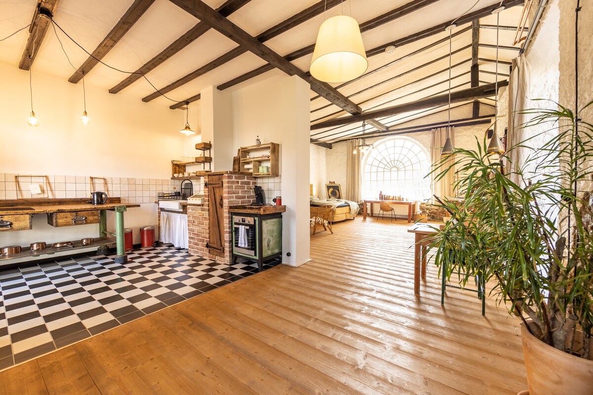 ¡Welkom en Luna Loft! El Loft es un espacio de vida y trabajo lujoso, muy espacioso y bellamente renovado, adecuado para cuatro personas. Puedes irte de vacaciones o trabajar en paz, incluso durante mucho tiempo. El loft y la naturaleza te ayudarán. Donde ahora se encuentra el muy espacioso salón, hace unos años se mostraron las balas de heno y paja y las escaleras de frutas de madera de ceniza de largo metro contra los racimos de roble. El loft tiene 110 m2 y se ubica en el borde del pueblo deGovenvoeren.
