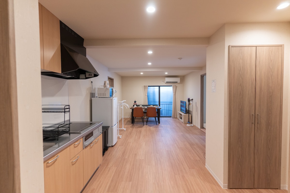 A solo una parada de las prisas de la ciudad, pero alejado silenciosamente de su ruido: Reikyo presenta una habitación tranquila diseñada para viajeros que valoran la calma, la luz y el minimalismo refinado. Este espacio con cama tamaño king combina elementos tradicionales japoneses con comodidad moderna, con sombras suaves emitidas a través de pantallas shoji y una paleta seleccionada de madera profunda, gris piedra e iluminación indirecta cálida. Disfruta de una taza de té a la luz de la mañana, cocina una comida sencilla en la cocina incorporada o simplemente relájate en silencio.