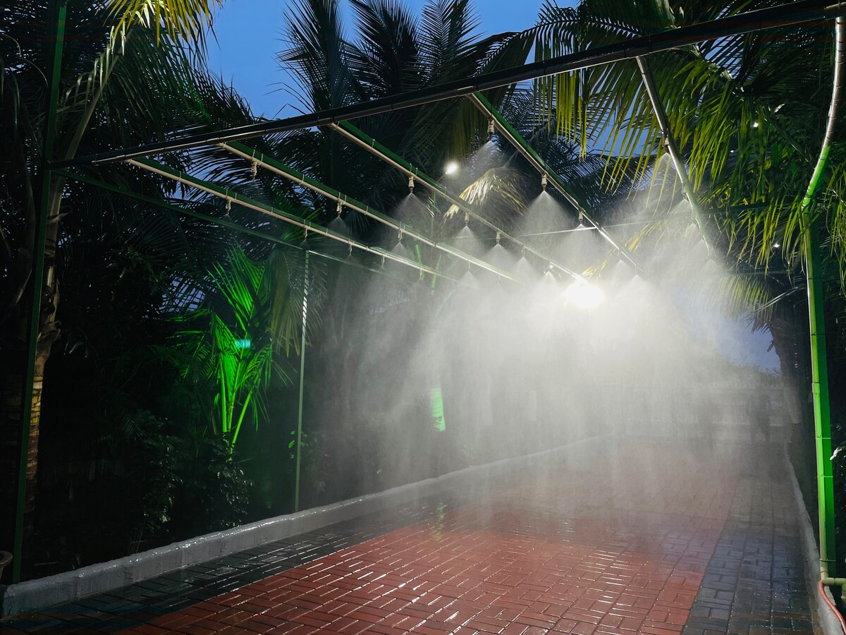 Welcome to our serene farmhouse, featuring a cozy 3-bedroom cottage set amidst 2 acres of lush farmland. Enjoy the natural beauty of mango, chikoo, and coconut trees, along with flourishing teak and mahogany plantations. The property is a haven for nature lovers, with an abundance of butterflies and birds. Located near Nasik, a city renowned for its temples, vineyards, and religious sites, it offers a perfect blend of tranquility and cultural exploration, all within a short distance.