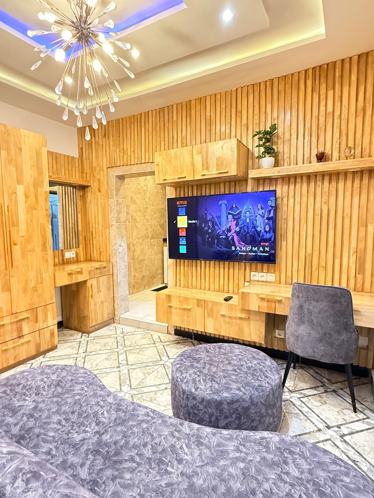 Disfruta de este elegante, cómodo y lujoso dúplex de 2 pisos con nuevos gabinetes de cocina, así como de los colchones inflados en gel de refrigeración para el alivio de la presión. Tienes todo el segundo y tercer piso y la azotea para disfrutar. Todo el segundo piso tiene una cocina de tamaño completo con todos los electrodomésticos nuevos importados, horno, cocina de gas, una gran isla y sofás hechos a mano para relajarte. El tercer piso tiene los 3 dormitorios. La azotea ofrece una vista increíble (como ninguna otra) de toda la ciudad de Cotonou.