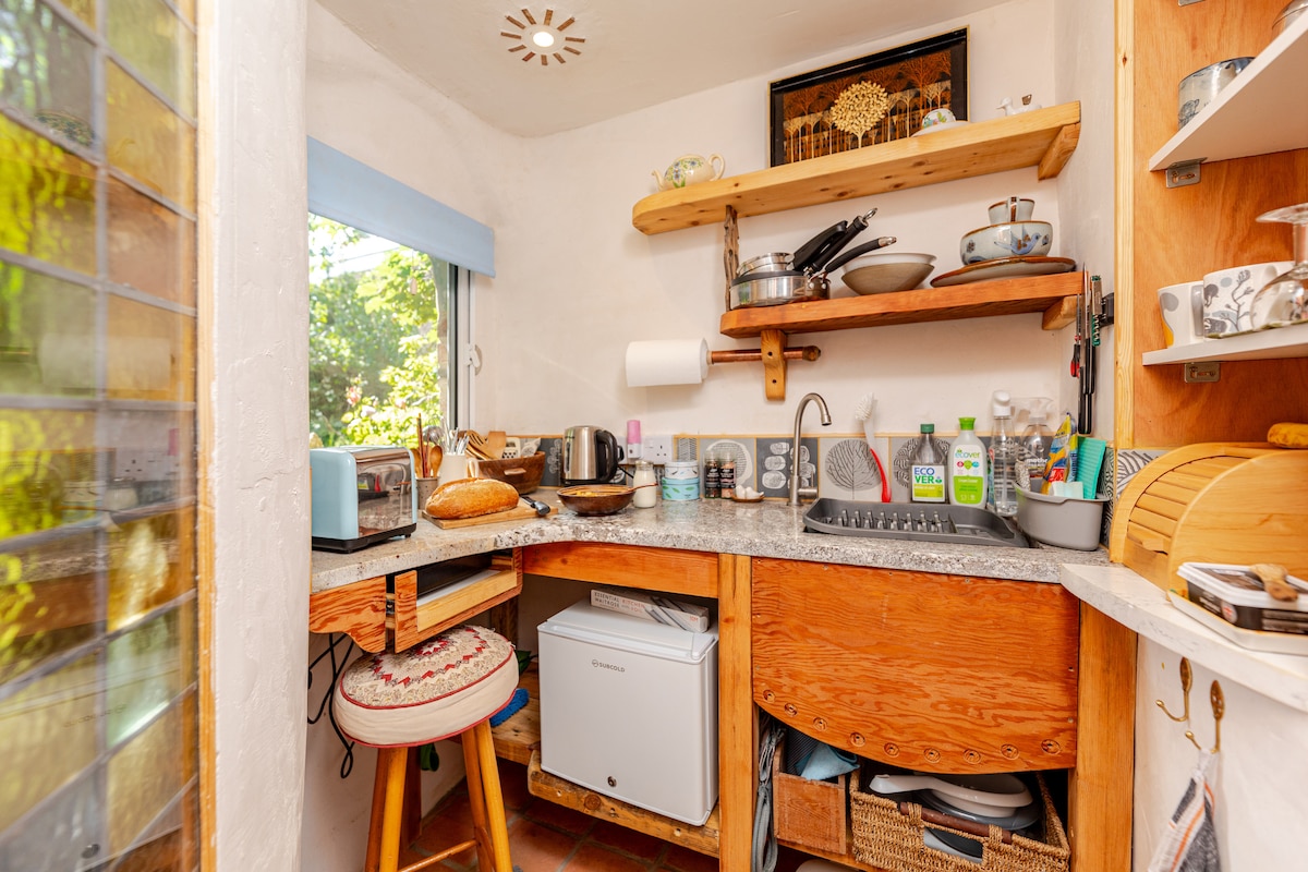 Vuelve a conectar y despierta en la naturaleza con esta escapada inolvidable. Casa del árbol aislada con todo lo necesario para relajarte e inspirarte. Prepara tus propias comidas, organiza las comidas proporcionadas por tu anfitrión (un chef profesional) o prueba uno de los muchos restaurantes de la ciudad. Tiendas cercanas. Tu propio baño privado está situado a pocos metros de distancia en la casa principal. También puedes disfrutar de nuestro hermoso jardín, estanque de lirios y la simpática gata, Nina. Tus anfitriones están siempre disponibles para garantizar una experiencia cómoda y enriquecedora.