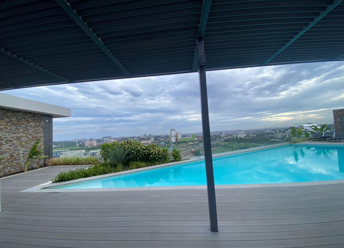 Relax in this stylish three-bedroom apartment at Villagio, Accra. It features a spacious living area, a fully equipped kitchen, and beautiful city views in a serene, secure setting. Centrally located and just a five-minute drive from Kotoka International Airport, with access to a swimming pool and key city attractions nearby, ideal for business or leisure stays.