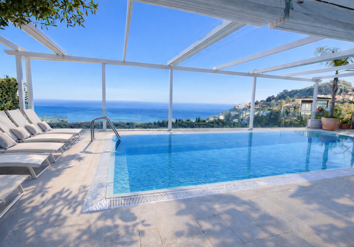Villa panorámica en el Etna con piscina con vista al mar