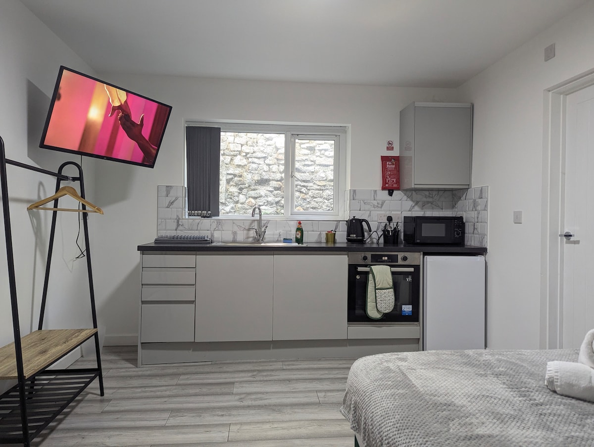 Este apartamento es un punto de partida perfecto para el trabajo o el placer a solo 25 minutos a pie o 6 minutos en coche del centro de Cardiff. La cocina/sala de estar de planta abierta recientemente reformada y luminosa tiene todo lo necesario para relajarse o trabajar con nuestro wifi gratuito de 358 MB y televisor de pantalla plana. Con el cómodo dormitorio doble y la ducha a ras de suelo, también cuenta con todo lo que necesitas para un agujero de perno mientras te alojas en esta maravillosa ciudad.