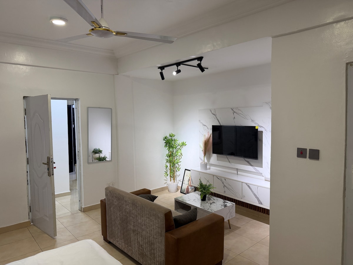 Disfruta de tu estadía en este elegante apartamento de 1 dormitorio amueblado en East Legon, Accra. El apartamento está a 14 minutos del Aeropuerto Internacional de Kotoka y está cerca de The AnC Mall, Pulse Gym and Fitness, y de varios restaurantes y restaurantes, incluidos KFC y Pizza Hut. Además de todo lo anterior, contamos con un generador de reserva y un sistema de almacenamiento y bombeo de agua, por lo que nunca tendrás un corte de electricidad o agua.