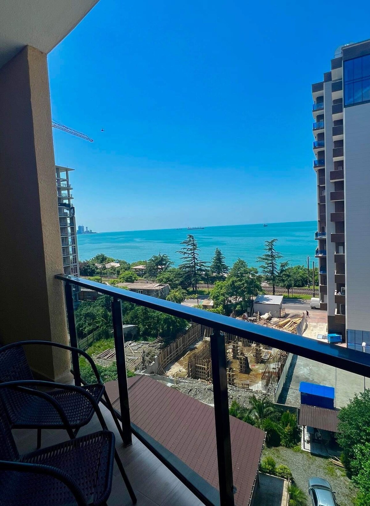 Apartamento con vista panorámica de 180 grados de Batumi. Puedes ver el amanecer desde tu dormitorio por la mañana y la puesta de sol por la noche. Desde el balcón hay una vista chic del estadio de fútbol Arena Batumi. Centro comercial a 30 metros (supermercado, farmacia, etc.). El mar está a pocos minutos a pie. Apartamento con una vista panorámica de 180 grados de Batumi. Desde el balcón hay una vista chic del estadio de fútbol Arena Batumi. Centro comercial a 30 metros (supermercado, farmacia, etc.). El mar está a cinco minutos a pie.