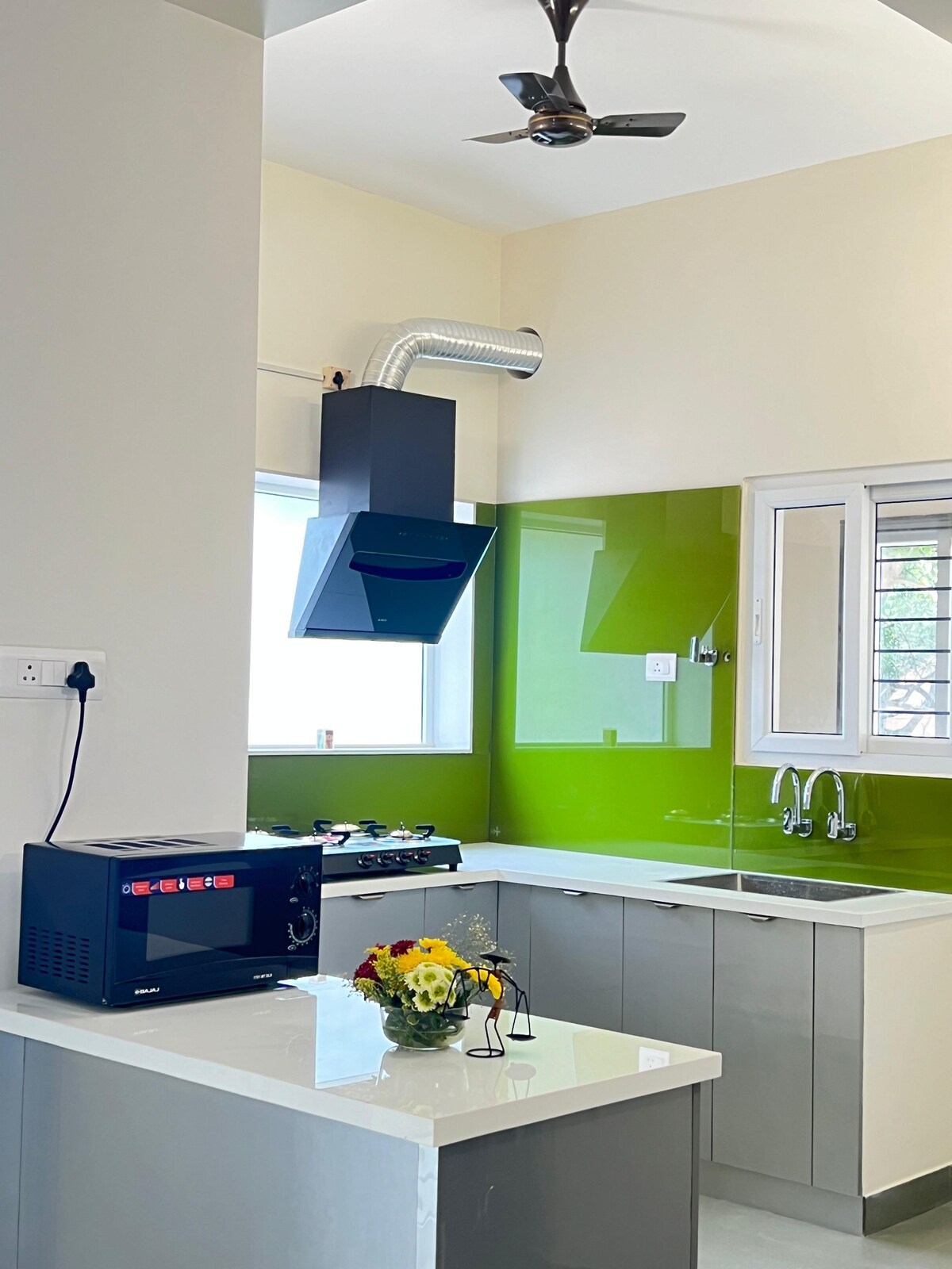 Este apartamento de 3 dormitorios, ubicado en Besant Nagar MG Road, cuenta con una puerta principal verde distintiva que establece un tono vibrante. En el interior, el espacio abarca un diseño minimalista con muebles neutros, creando un ambiente tranquilo y ordenado. Los detalles verdes suaves se integran sutilmente a través de la decoración y las obras de arte, armonizando con la estética minimalista. Cada habitación mantiene un ambiente moderno, complementado con muebles elegantes y sencillos. Este piso combina la elegancia contemporánea con un aspecto fresco.