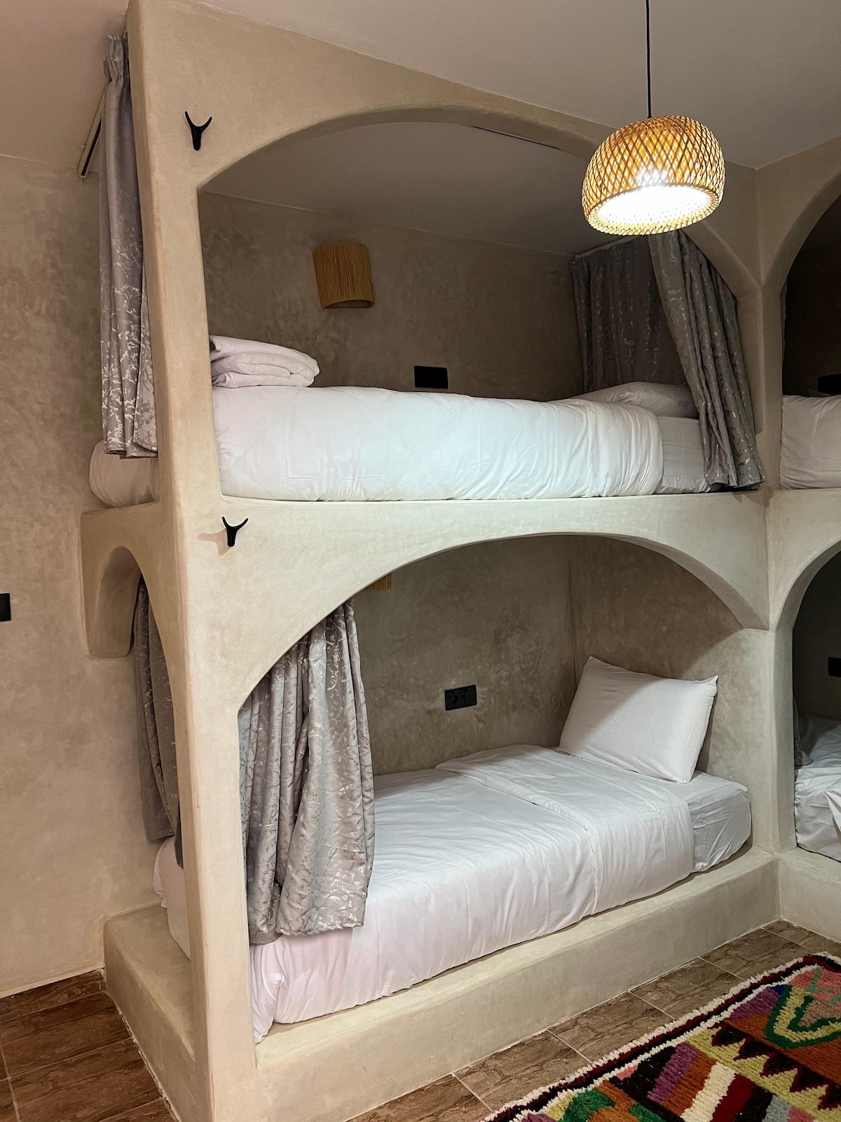 Cozy twin room inspired by the traditional charm of Fez, offering a peaceful and bright space to relax after a surf day. Located on the second floor of Nomazigh Surf House, guests can enjoy access to the chill terrace, co-working area and a rooftop with ocean view. Just a short walk to local bakery (1 min), Happy Tamraght restaurant (2 min), and Manzili Co-working (4 min). Close to popular surf spots like Devil’s Rock and Banana Point.