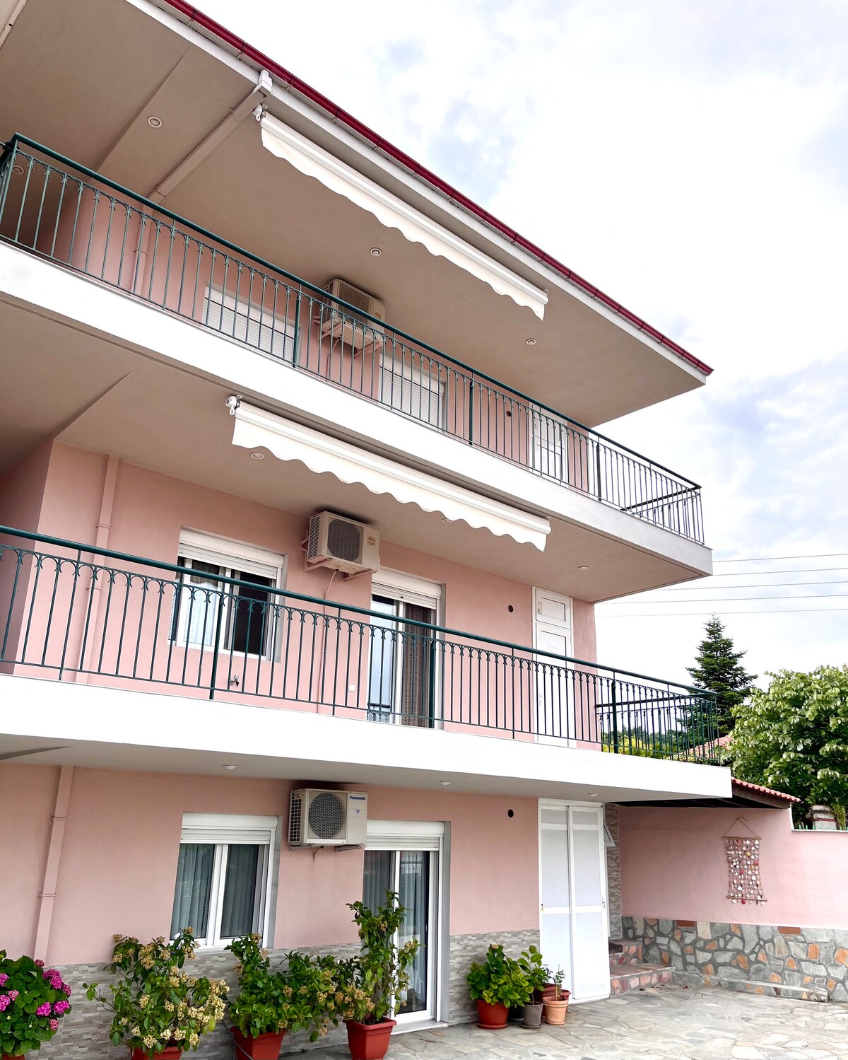 Una casa de nueva construcción, hecha con cuidado, hermosa y con todos los servicios para garantizar una estancia cómoda. Cocina totalmente equipada. TV, aire acondicionado. Ambos dormitorios tienen colchones y almohadas hipoalergénicos anatómicos. Un gran baño con secador de pelo y lavadora. Amplia terraza privada con ventilador de techo y tumbonas en el patio. Ducha exterior. A solo unos pasos del mar. Muy cerca hay tabernas, supermercados, tiendas, cafeterías y bares. El aeropuerto de Salónica está a unos 35 km y a solo 13 km está la cueva de Petralona Halidiki.