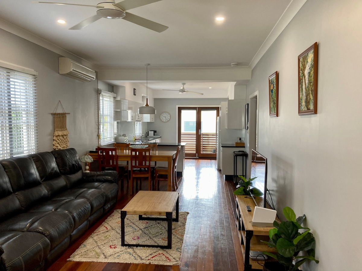 Te damos la bienvenida a Agnes Water Views. Situado en uno de los puntos más altos de Agnes Water, disfruta tanto del amanecer como de la puesta de sol desde Agnes hasta 1770 y Bustard Heads desde el porche de 13 m de largo. Abierta a los huéspedes por primera vez en septiembre de 2021, nuestra casa de campo restaurada con cariño se ha terminado pensando en tu comodidad. Disfruta del tranquilo bloque de matorrales con abundantes animales nativos. Aunque es privada y tranquila, estás a solo 1 km de la playa principal y a 3 minutos de tiendas, cafeterías y restaurantes en la parte inferior de la colina.