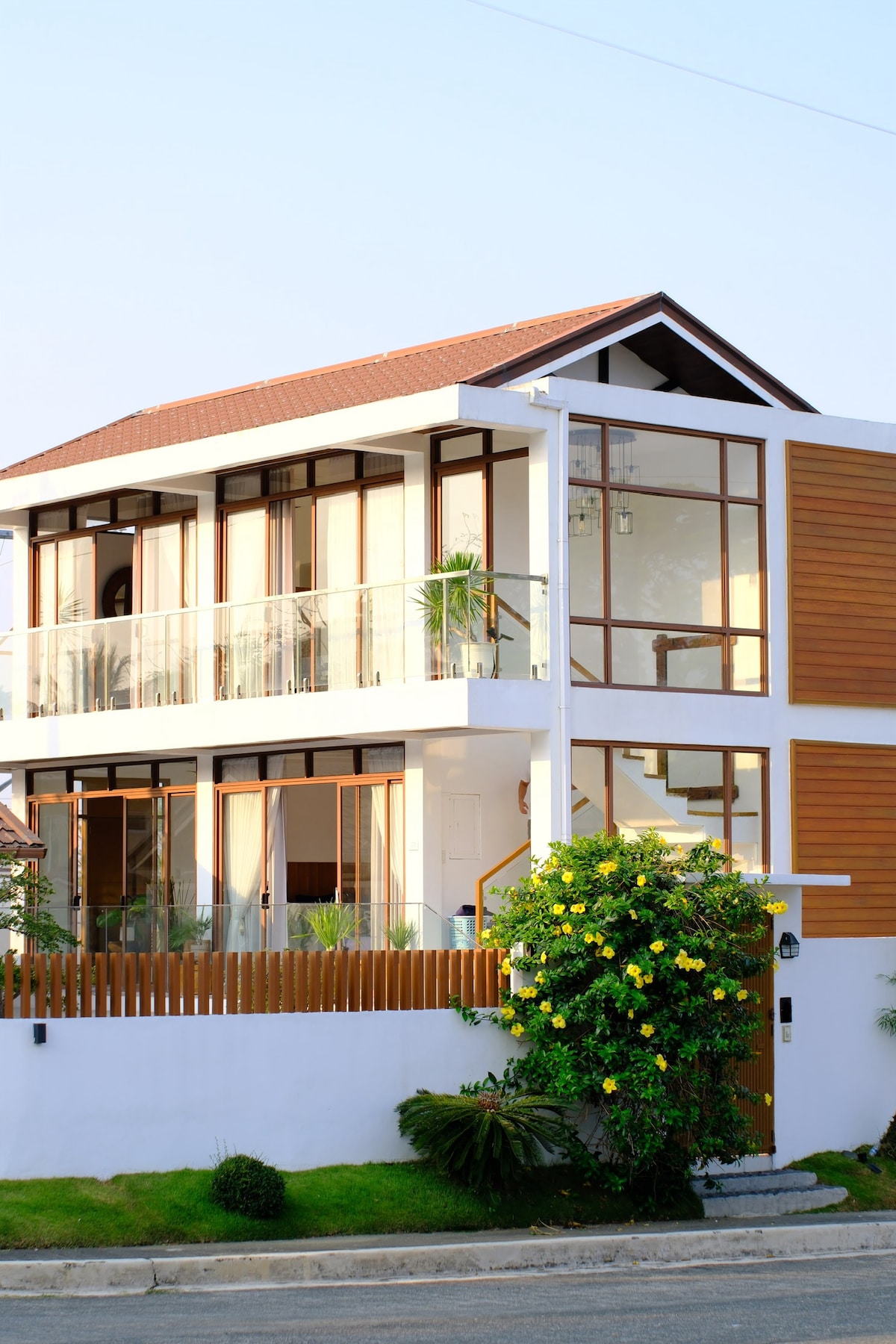 Esta villa tropical moderna de 380 metros cuadrados de nueva construcción está equipada con una piscina termal para disfrutar de un baño relajante mientras disfrutas de la brisa fría de Tagatay. BellaVilla cuenta con una vista de 360 grados de exuberantes zonas verdes y está cerca de los mejores restaurantes que Tagaytay puede ofrecer a lo largo de la carretera Tagaytay-Nasugbu. ACTUALIZACIONES A PARTIR DE (marzo de 2024): > NUEVO televisor OLED con Netflix para tu placer visual. > NUEVA ducha y urinario dedicados para la piscina. > NUEVA unidad de aire acondicionado en la habitación familiar del segundo piso.