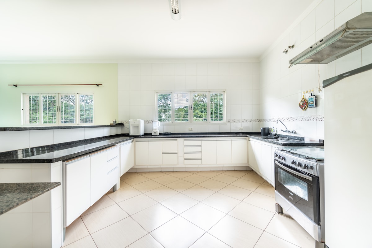 La casa se encuentra en una comunidad cerrada dentro de las Termas de São Pedro, a pocos minutos del centro de Águas de São Pedro, y ofrece una piscina climatizada con hidromasaje y cascada. Tiene 3 dormitorios con aire acondicionado y ventilador de techo, así como una completa área de ocio con parrilla, estufa de leña, mesa de billar, ping pong, futbolín y Wi-Fi con internet de fibra óptica. Solo aceptamos mascotas pequeñas, y debes informarnos en el momento de la reserva. No aceptamos gatos.
