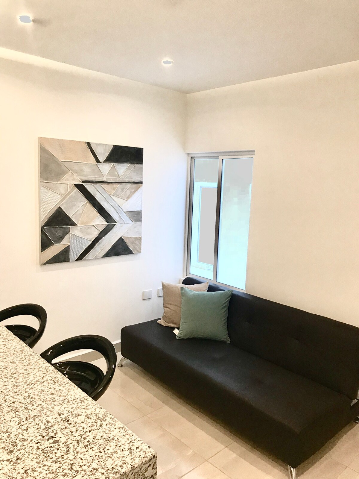 Omega Black depa nuevo en zona Tec a 7 min de Colosio, con increíble vista desde 8vo Piso, TV 75", 65" y 58" + terraza privada. 3 Aires Acond. opcionales $300 por noche. 1 auto seguro en estacionamiento techado privado, torre cuenta con seguridad 24Hrs, y doble elevador con acceso por QR. Por el momento jacuzzi, vapor, sauna, sky bar, gym y business center estan restringidos para Airbnb por la administración. Centro comercial con Starbucks y Gold Gym a un costado.