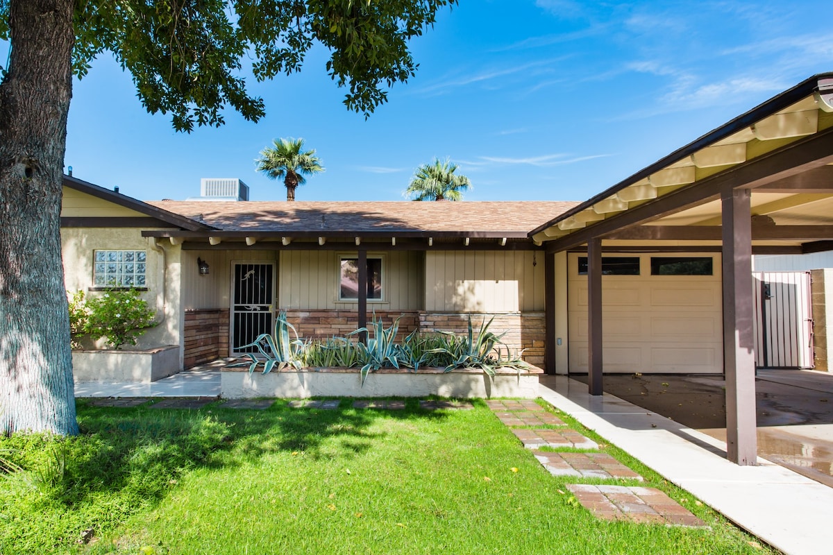 Bienvenido a Southwest Mod, remodelado con toques del oeste. Barrio limpio, cómodo y pintoresco. UBICACIÓN DE AHWATUKEE: a 10 minutos del aeropuerto Sky Harbor, a 5-30 minutos de Tempe, Chandler, Scottsdale y Gilbert. A 10-30 minutos de varias instalaciones de entrenamiento de primavera. Casino y campos de golf cerca. A dos manzanas del sendero South Mountain. ¡Cerca de tiendas y restaurantes! Patio trasero estilo resort con vistas a la montaña, zona de comedor y salón, árboles frutales, parrilla de propano y chimenea. La piscina NO está climatizada.