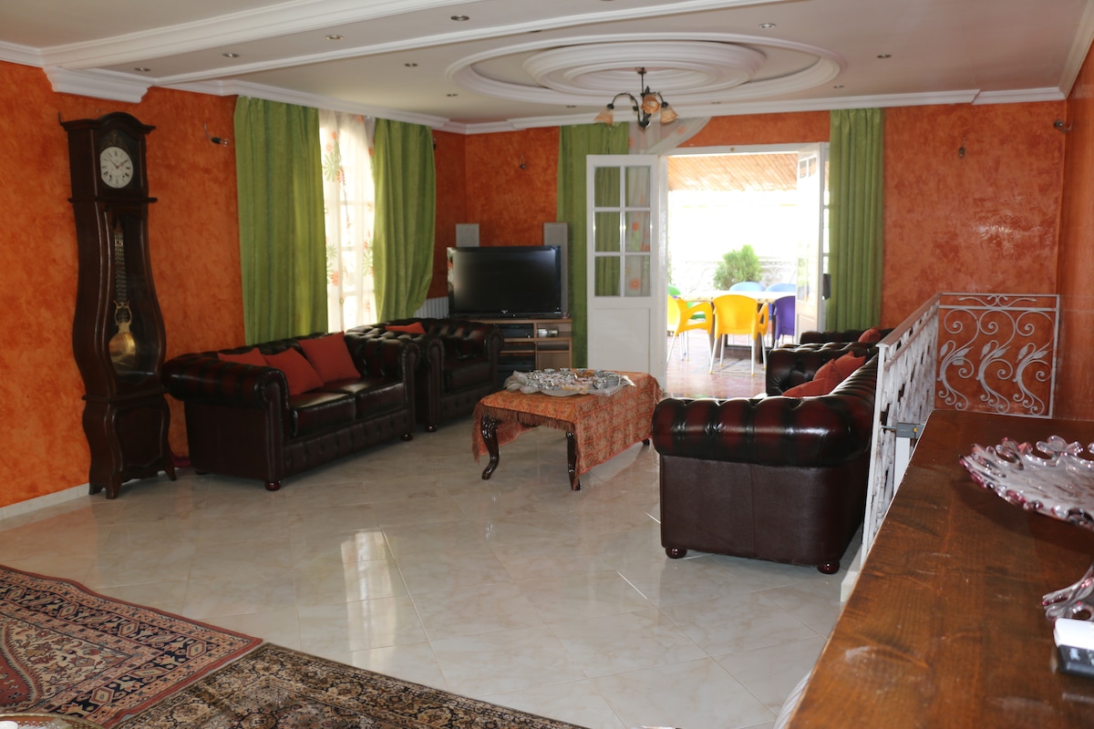 Este alojamiento familiar está cerca de todos los lugares de interés y comodidades. Tranvía .autobús . Taxi .banco. restaurante. Supermercado. Mercado. Centro comercial Ritej Mall. Aeropuerto Constantine. Servicios médicos... Grand Boulevard calefacción central 2 ascensores agua caliente