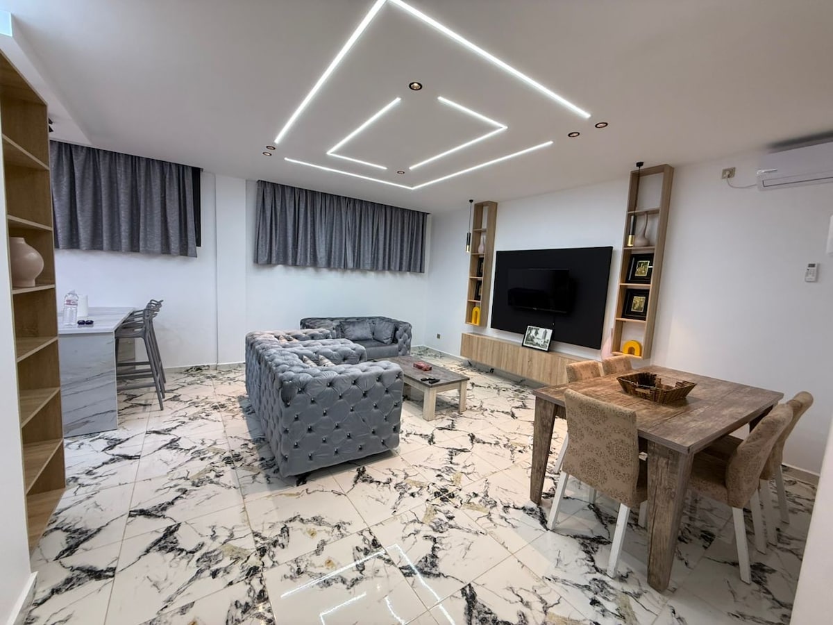 Au cœur d’Oran, dans une résidence calme et sécurisée avec parking privé Lumineux, deux chambres accueillantes avec literie de qualité, une cuisine équipée (avec vaisselle fournie) et une salle de bain. Vous bénéficierez d’une connexion Wi-Fi stable, d’une télévision à écran plat, ainsi que de toutes les commodités nécessaires pour un séjour agréable. Emplacement privilégié : à seulement 3 minutes à pied du boulevard Trait d’Union, et à 7 minutes en voiture d’Akid Lotfi comme du Front de Mer.