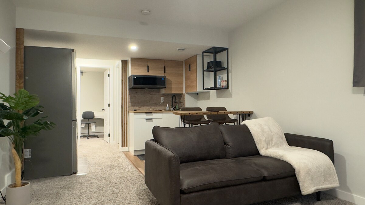 Disfruta de una suite de un dormitorio recién construida y luminosa con vistas serenas al estanque, ubicada en una tranquila calle sin salida para una escapada relajante. La suite ofrece una amplia sala de estar bañada en luz natural, una cocina moderna totalmente equipada, un baño completo y un televisor inteligente con Netflix, perfecto para relajarse después de un día explorando las Rocosas. Este acogedor refugio privado se encuentra en uno de los barrios más deseables de Calgary, con fácil acceso a Stoney Trail, Crowchild Trail y a solo 5 minutos en coche de LRT.
