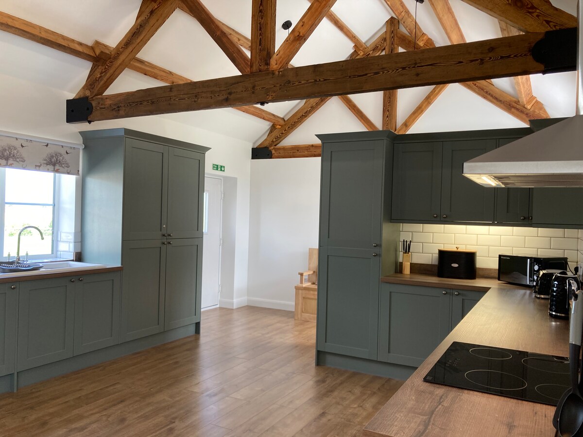 Tómate un descanso y relájate en este espacio rural tranquilo y elegante. Disfruta de pasar tiempo en un entorno de lujo, rodeado de tierras de cultivo y bonitas vistas con todos los servicios de tu hogar. Disfruta de las vistas desde tu cama tamaño king, la gran bañera independiente o el balcón Juliet. Relájate en la gran sala de estar viendo tus películas favoritas en el televisor inteligente de 75 pulgadas, wifi y sonido envolvente. Tienes una cocina equipada con cocina eléctrica con ventilador y 2 fogones para cocinar tus comidas y una mesa de comedor para comerlas.