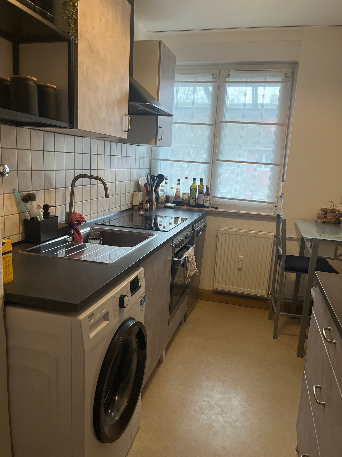 Departamento moderno en el quinto piso (ascensor al cuarto piso) de un pequeño edificio de apartamentos. El luminoso departamento tiene 59 metros cuadrados y ofrece suficiente espacio para nuestros huéspedes. El balcón es perfecto para tomar el sol y relajarse. En el baño pequeño pero fino, puedes bañarte o ducharte, dependiendo de tus preferencias. En la cocina encontrarás un filtro, así como una máquina de café expreso, llena de café para los primeros días. La cocina está equipada con todo el equipamiento de las necesidades diarias, con microondas.