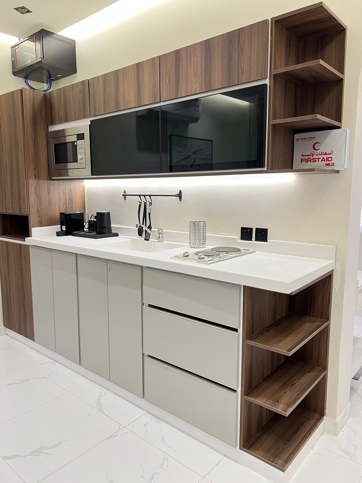 Descansa y acomódate en esta suite de dos dormitorios con baños privados y un salón abierto con una cocina de diseño de hotel europeo Solo tiene capacidad para 4 personas Familias Entrada autónoma con tu propio número privado Audio completo en todas las habitaciones Wattlalah Panorama Entero Muebles Ultra VIP Hay una cocina amueblada, lavadora automática, microondas, plancha y gas. Es totalmente independiente La ubicación del Centro Bergdan es la ciudad de Al-Baha, en medio de los parques de esta residencia de campo.