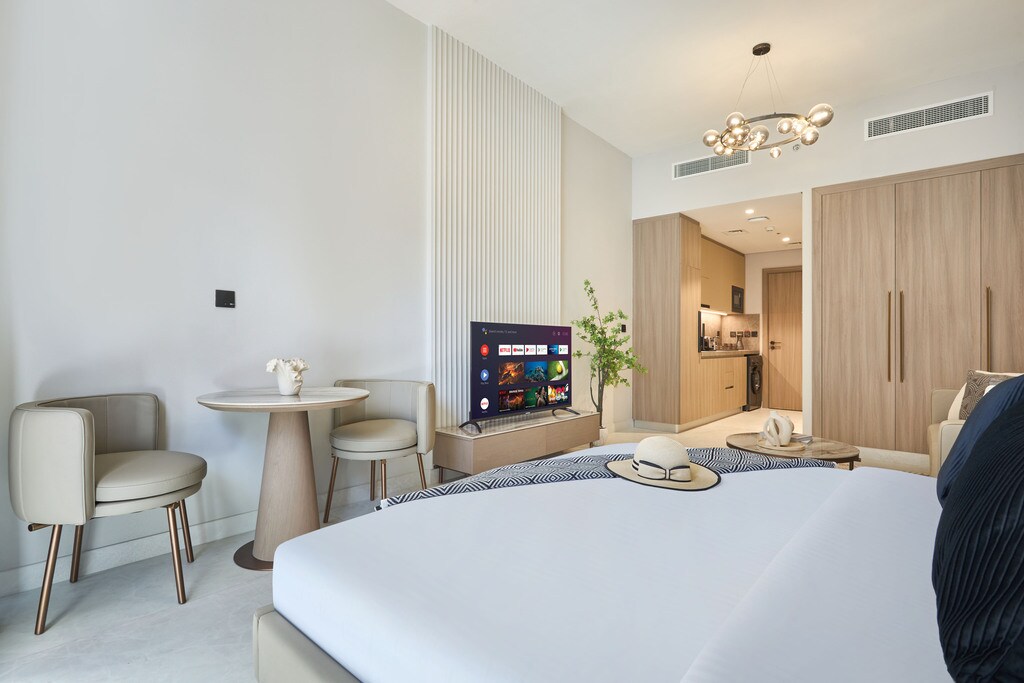Siéntete como en casa en este apartamento de 1 dormitorio ubicado en JVC, Dubái. Ideal para personas, parejas o familias pequeñas, el departamento ofrece una sala de estar, una cocina totalmente equipada, entretenimiento en el hogar, wifi de alta velocidad y acceso a servicios premium. Es ideal para viajes de negocios y de placer, ya que está cerca de restaurantes, cafés y servicios esenciales, y al final del día podrás regresar a un espacio lujoso que se siente equilibrado y sereno.