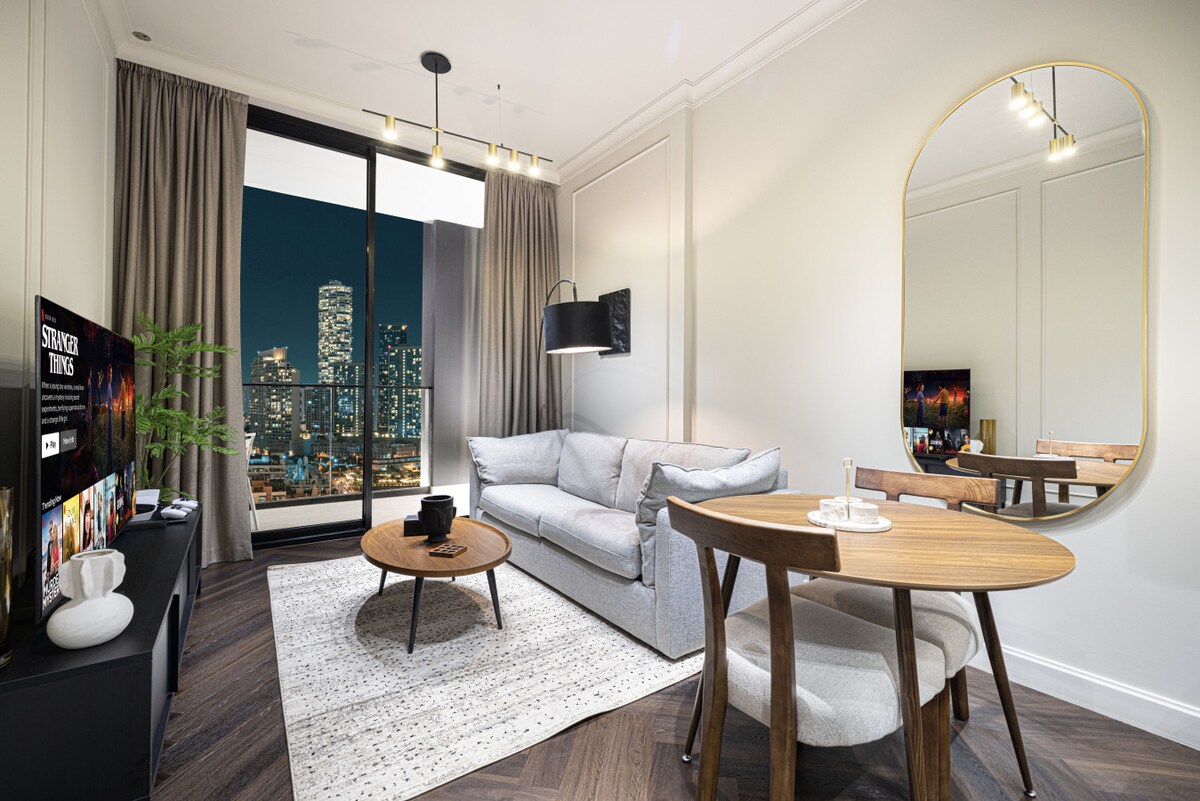 Piso alto moderno de 1 dormitorio | Piscina privada