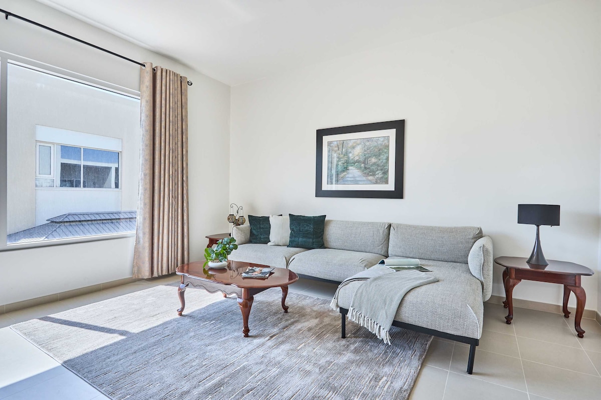 Acomódate en este acogedor refugio de 2 dormitorios en MAG 565, Dubai South 🌤️, con capacidad para 6 personas con camas tamaño king y queen, además de un sofá cama. Disfruta de dos baños, una cocina totalmente equipada y un balcón privado con vistas tranquilas ✨. Aprovecha el estacionamiento gratuito, la seguridad 24/7, la piscina 🏊♂️ y el gimnasio 💪, a pocos minutos de EXPO City y el aeropuerto Al Maktoum. Ideal para familias y estancias de negocios.