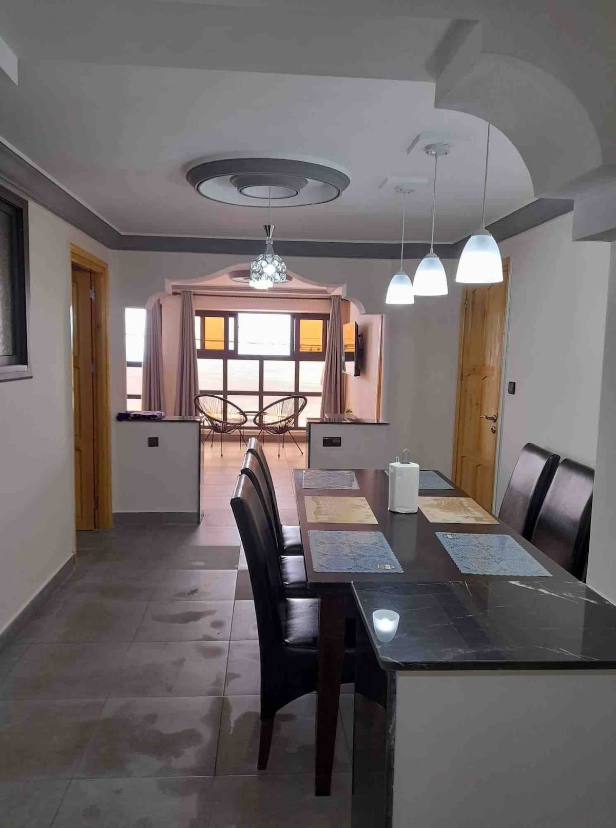 Bienvenido a tu escapada mediterránea de ensueño: un apartamento de lujo, tranquilo y BN. Situado a pocos minutos a pie de las playas de Maktoâa, Calabonita y Matadero. Descubre una impresionante cocina americana de concepto abierto con elegantes encimeras de bar: siéntete como en casa mientras te rodeas de encanto mediterráneo. Cuenta con dos cómodas habitaciones, ideales para noches de descanso, con la opción de dos camas adicionales. dos patios románticos y privados para disfrutar de la fresca brisa costera. Donde el lujo se une al romanticismo