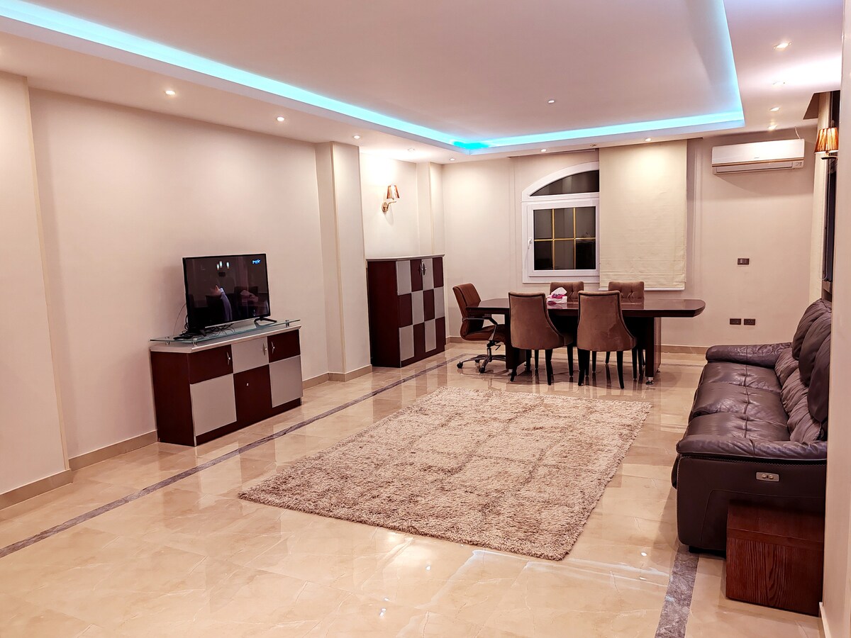 Un apartamento 2 BR recién terminado y amueblado que satisfará todos tus deseos y necesidades. Situado en el corazón de El Cairo, a casi 10-15 minutos de (Aeropuerto de El Cairo-Nueva ciudad de El Cairo-Heliopolis-Nasr) y a 30-40 minutos como máximo (río Zamalek-Downtown-Nile). Nuestros huéspedes pueden disfrutar de un espacioso apartamento en un alquiler a corto o largo plazo con todo el edificio asegurado con cámaras y un guardia. Para los alquileres de larga duración, los precios se ajustarán en función de la duración de la estadía.