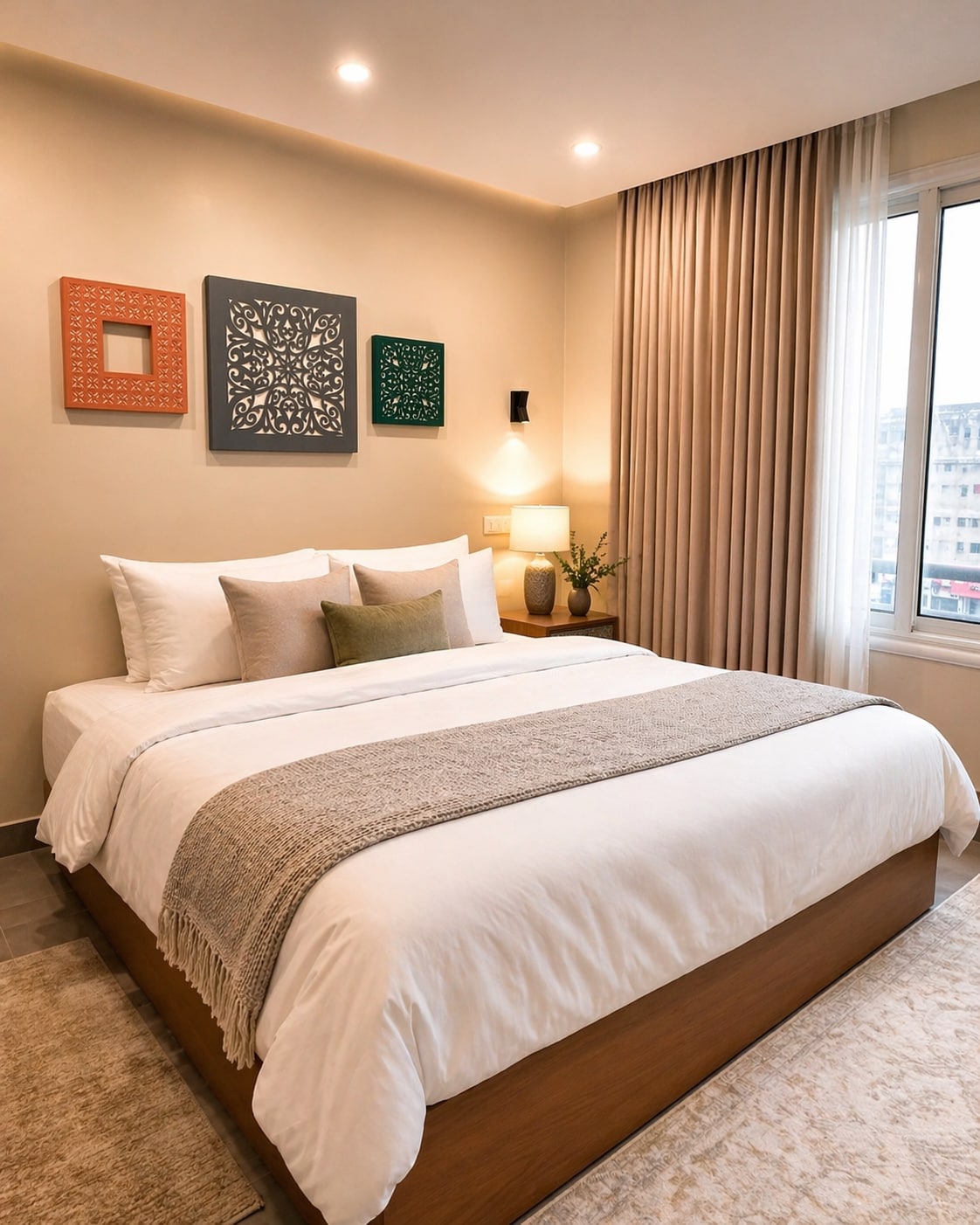 Bienvenido a un elegante apartamento de dos dormitorios en El Cairo, perfecto para viajeros. Este espacio combina acabados modernos con el cálido carácter egipcio. El departamento cuenta con dos camas tamaño king, una cocina completa, dos baños y una luminosa sala de estar. A solo 5 minutos del aeropuerto y 45 minutos de las pirámides de Guiza, es ideal para explorar las atracciones icónicas de Egipto.