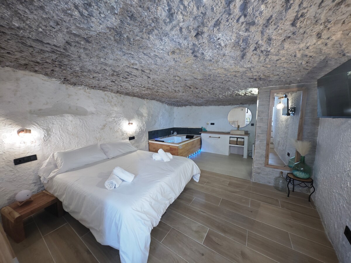 Alójate en está preciosa casa cueva y vive una experiencia diferente hasta ahora. Relájate en nuestro hidromasaje doble dentro de la cueva. Esta casa cueva está equipada con todo lo necesario para pasar unas buenas vacaciones. Cocina completa, hidromasaje, TV en salón y dormitorio, aire acondicionado, secador, plancha... NORMAS DE LA CASA: *No se admiten fiestas *Queda prohibido bajo sanción extraer o cavar en la cueva cualquier Amonite. *Se ruega tener precaución con la altura de la cueva