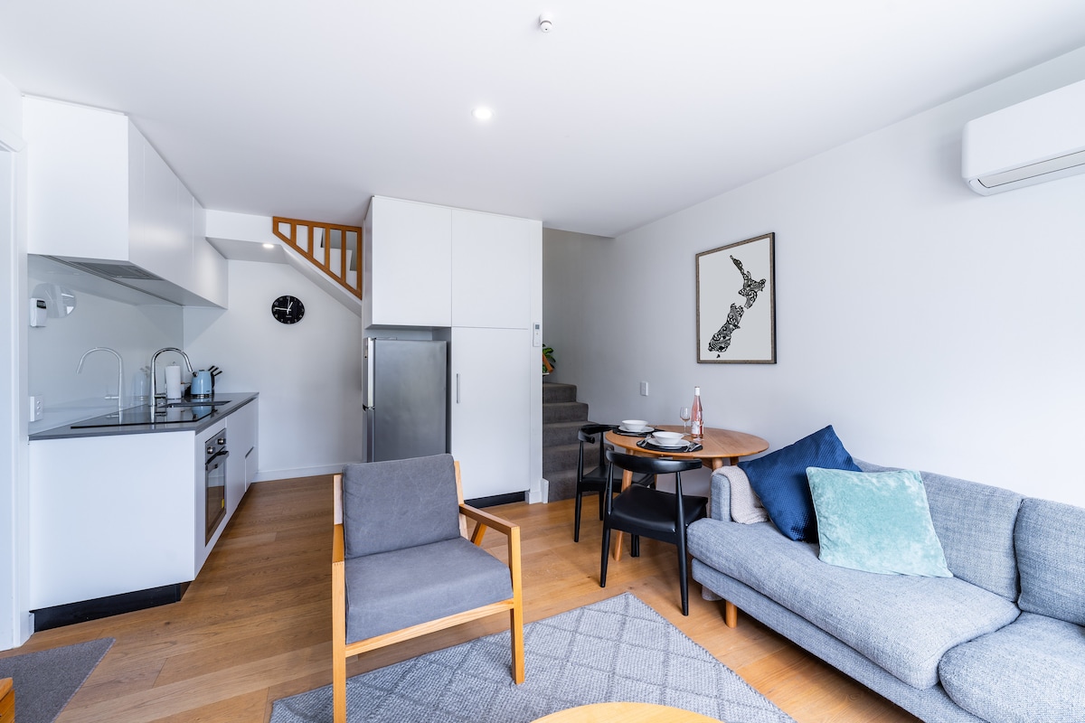 Este apartamento estudio privado y autónomo está a pocos pasos del centro de Wanaka. Hay una cocina completa con lavandería y estacionamiento en la calle. El estudio tiene un techo de césped único y una gran terraza soleada con una bañera de hidromasaje. El estudio está situado en un entorno similar a un parque con árboles maduros. La cómoda cama tamaño queen tiene una manta eléctrica y ropa de cama de calidad. Este estudio se completó recientemente con muebles de calidad y está a solo 5 minutos caminando del borde del lago Wanaka.