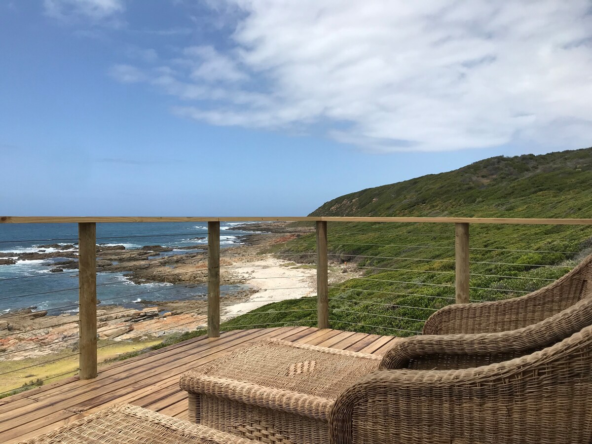 Mi alojamiento está en el pintoresco pueblo de Vleesbaai, a unos 20 minutos en coche de Mossel Bay y a una hora del aeropuerto de George. La cabaña se encuentra sobre las rocas con una vista ininterrumpida de toda la playa y la bahía. Es buena para parejas y aventureros solitarios. El apartamento es independiente y tiene sus propias puertas con cerradura. Desde la casa hay un sendero de 300 metros hasta la playa. Hay una tienda de comestibles en la ciudad y una cafetería a unos 2 km de distancia. Aquí se habla afrikáans e inglés.