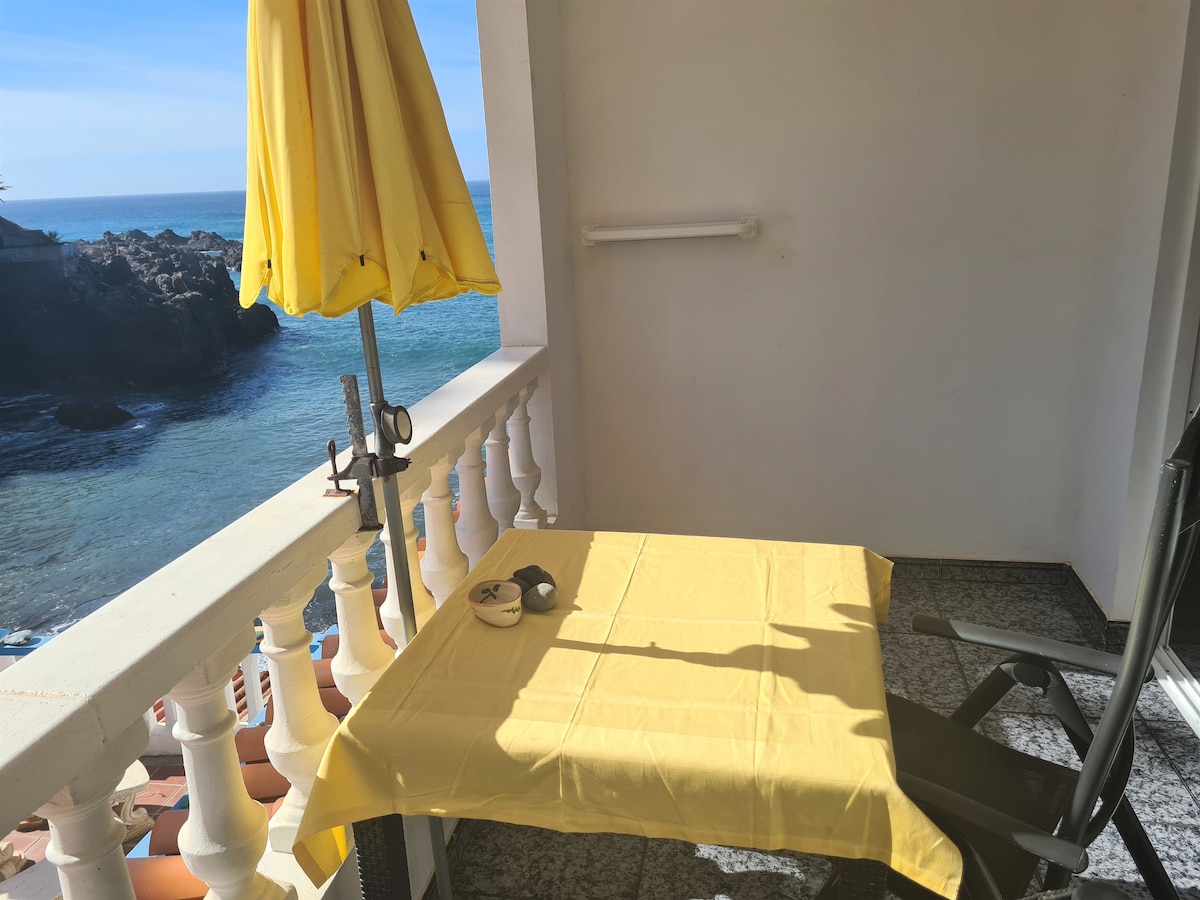 La vivienda vacacional está en primera linea de playa, en las rocas del mar, con unas vistas marravillosas. La terraza está orientada al sur, podria disfrutar del sonido del mar. Está en Alcalá, un pequeno pueblo sobre el mar, con ambiente de un pueblo de pescadores. En esta zona costera del oeste hace el sol todo el ano, hay el mejor clima de la isla. La playa está a 2 min a pie, tambien la plaza con restaurantes, bares, supermercado... Hay varios otros baias y playas, todo a poca distancia.