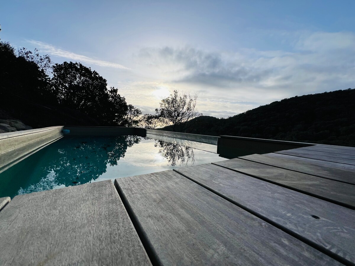 Residencia de piedra entre el mar, la montaña y la piscina.