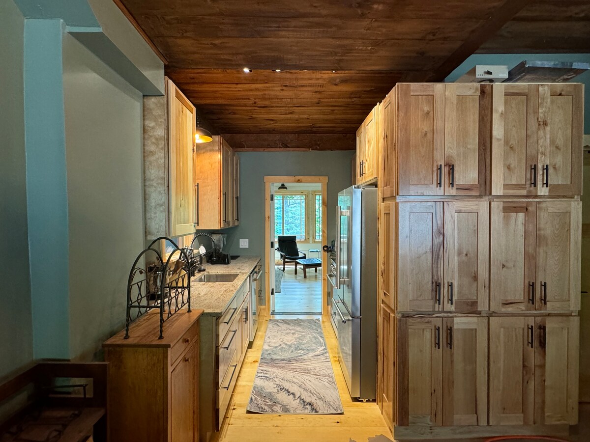 Esta impresionante casa de madera única, presentada en la revista Log Home Living, construida en 2020, se encuentra al final de un camino bordeado de árboles en 3,5 acres con vistas al hermoso lago Newfound, NH. Esta casa de 147 metros cuadrados puede alojar a un MÁXIMO de 6 huéspedes en 3 dormitorios. Las comodidades son 100 mbs Wi-Fi, TV, chimenea de gas, parrilla de gas, jacuzzi, generador de toda la casa, aire acondicionado central, porche con mosquitero y patio enorme. Pase de estacionamiento a la playa privada de la ciudad que se encuentra a menos de 1/4 de milla de distancia.