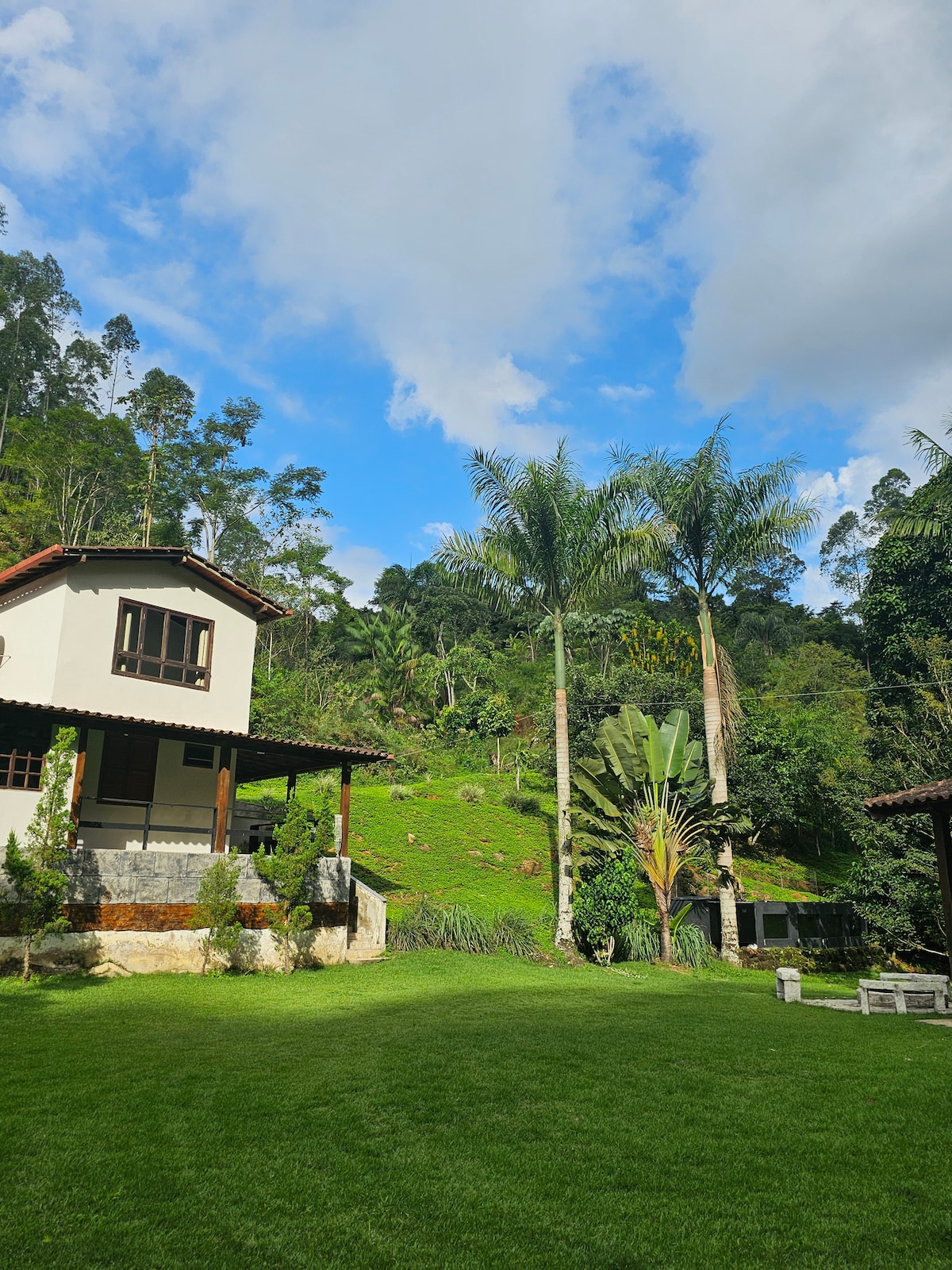 A solo 80 km de Vitória, a 22 km de Pedra Azul y a 8 km de la BR 262, el encantador Chalé das Palmeiras se encuentra en Sítio Terras Claras, en una zona privada. Decorado y equipado para ofrecer comodidad y calidez. Jardín con piscina, chimenea, hamacas y lago. ¡Perfecto para relajarse! Estacionamiento, wifi, Smart TV con Sky y aire acondicionado/calefacción. Rodeado de lagos, ríos y bosques, en perfecta conexión con la naturaleza. Acceso a las atracciones de Sítio Terras Claras.