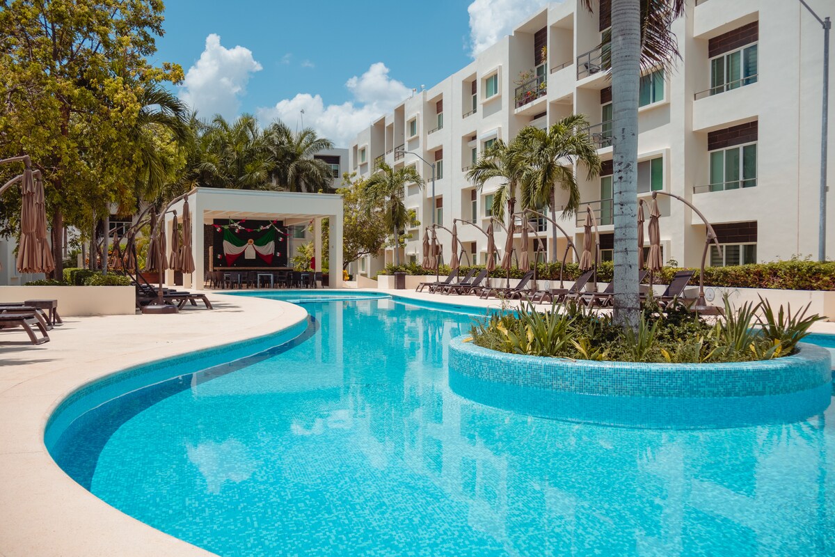 Condo seguro en Cancún: Alberca, BBQ y Mascotas