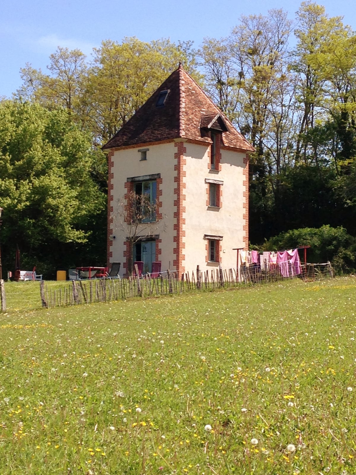 La Torre de Lalue, una nueva construcción de estilo Bourbonnais, puede alojar 2 o 3 personas. En la planta baja se encuentra la cocina con suelo de piedra de volvic, el aseo y la lavadora. En el primer piso se encuentra el salón con ventanales que dan excelentes vistas del Bocage Bourbonnais. Luego en el segundo está la habitación con ducha e inodoro. Un gran jardín cerrado, sus perros son bienvenidos, y una terraza espaciosa completan todo, relajante!!
