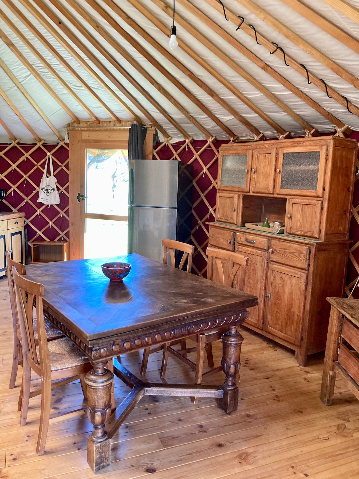 Venga a disfrutar de una bonita yurta, una burbuja de desconexión, situada en un claro aislado, sin vecinos... ¡discreción asegurada! Un entorno precioso, una calma relajante, una naturaleza revitalizante... Servicios incluidos: - 3 camas para adultos + 1 niño/bebé - posibilidad de poner 2 colchones supl. de 1 persona en el suelo - cocina equipada (vajilla incluida) - sanitarios cerca (inodoro+lavabo+ducha) - Equipamiento para bebé - barbacoa - campo de petanca - juegos para niños (columpios+tobogán)