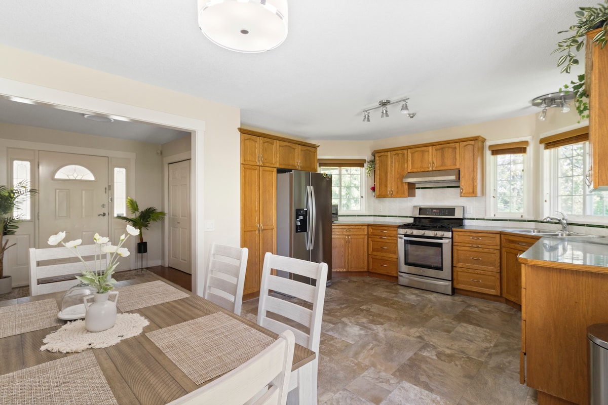 Olvídate de las preocupaciones en este gran alojamiento: ¡es un oasis de tranquilidad! La casa se encuentra a 5 minutos del centro de la ciudad, a 35 minutos de Vancouver, a 15 minutos del parque provincial Golden Ears y a 10 minutos del parque de aventuras Wild Play. Golden Ears es muy popular para practicar senderismo y deportes acuáticos. La casa está ubicada en un barrio orientado a las familias con un gran patio trasero y muchos aparcamientos y toldos para remolques de viaje o barcos.