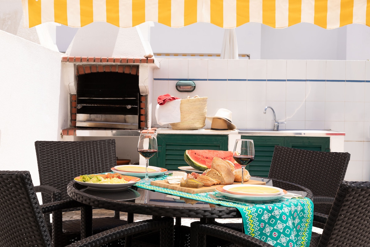 Villa en Altura, en una zona tranquila y a 400 metros de la playa. La casa tiene 3 dormitorios (uno en suite), 3 baños, cocina equipada, sala de estar con chimenea, aire acondicionado, TV y WiFi. También tiene estacionamiento, jardín amueblado con mesa de comedor para 10 personas, barbacoa y zona de ocio.