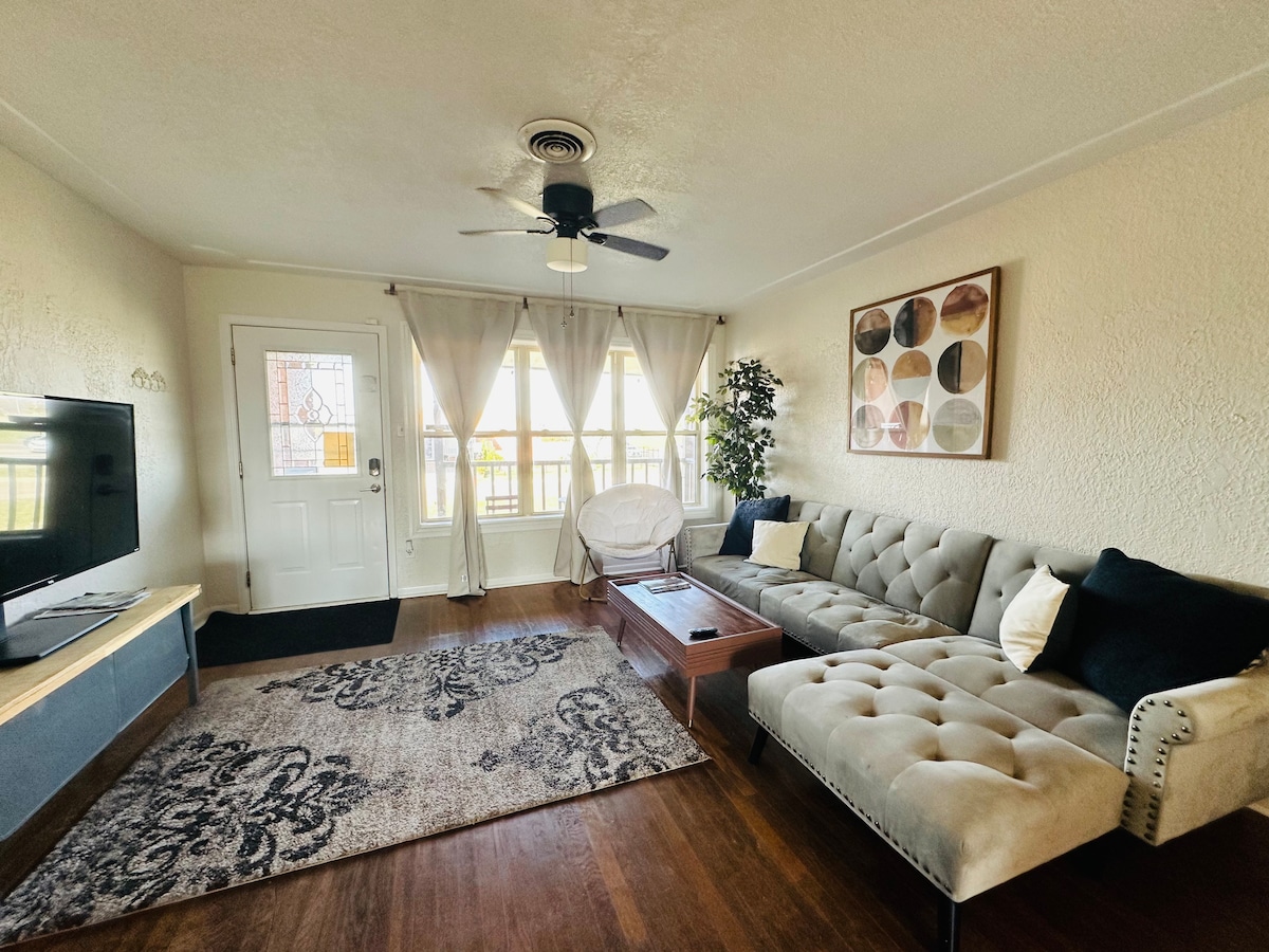 Este es un alojamiento moderno y elegante para alojarte durante tu visita. ¡Cuenta con todo lo que podrías necesitar en un entorno limpio y acogedor! ¡Camas con base ajustable! 3 televisores enormes, electrodomésticos nuevos y una casa totalmente remodelada. ¡Todo en una zona segura y protegida! ¡Zona de escritorio perfecta para trabajar, cómodo sofá para relajarse y una cocina gourmet con ollas/sartenes, platos y utensilios nuevos! Cerca de todo, ubicación céntrica. ¡Buenos restaurantes! ¿Por qué no ser el primero en alojarte en este moderno escondite?