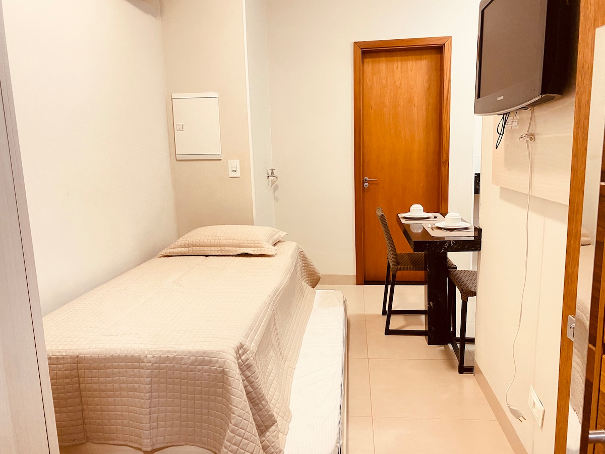 Kitnet compacta e funcional, ideal para estadias práticas e confortáveis. Incluso no espaço: • Roupa de cama e banho Cozinha equipada: • Louças e panelas • Filtro de água Localização excelente: • Próxima a farmácia, padaria, açougue, mercado • Pizzaria e lanchonetes nas redondezas