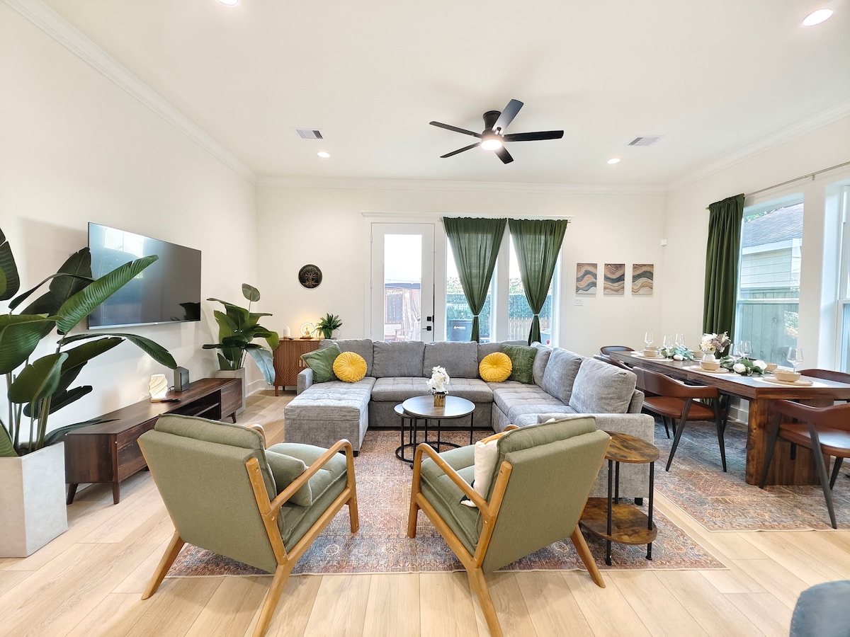 Disfruta del lujo en nuestro 'Midtown Gem', un alojamiento elegante de 3BR/3.5BA ubicado en el vibrante corazón del centro de Houston. Esta espaciosa propiedad cuenta con un gimnasio en casa y una terraza en la azotea con impresionantes vistas al horizonte de Houston. A poca distancia a pie de los mejores restaurantes y a un corto paseo en bicicleta de bares eclécticos, ofrece la mezcla perfecta de relajación y exploración de la ciudad. Ideal para aquellos que buscan un refugio urbano de primer nivel, disfruta de comodidades modernas y fácil acceso al dinámico centro de Houston.