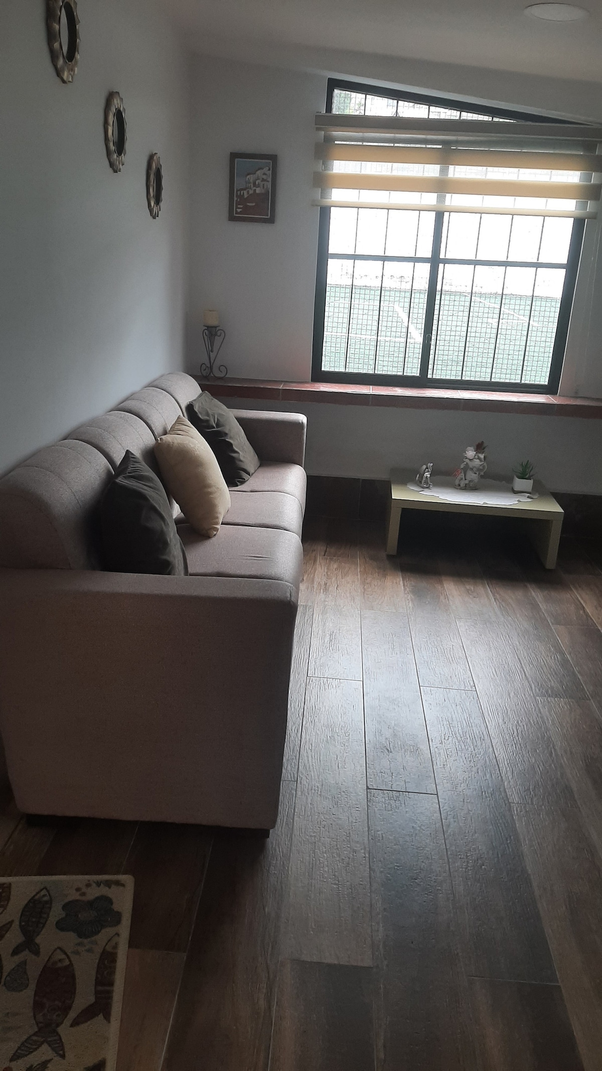 Hermosa Suite totalmente amoblada y equipada con, wifi, una habitación con una cama de tres plazas, sofa cama, cocina y menaje completo, comedor, un baño completo, amplia terraza cerrada y privada con parrilla de BBQ Android tv de 55 pulgadas en la sala (No directv ni tv cable, solo streaming) y Tv de 55 pulgadas en la habitación En caso de venir en vehículo POR FAVOR preguntar por disponibilidad del parqueadero Contacto: cero, nueve, ocho, cuatro, cuatro, seis, tres, cuatro, seis, dos