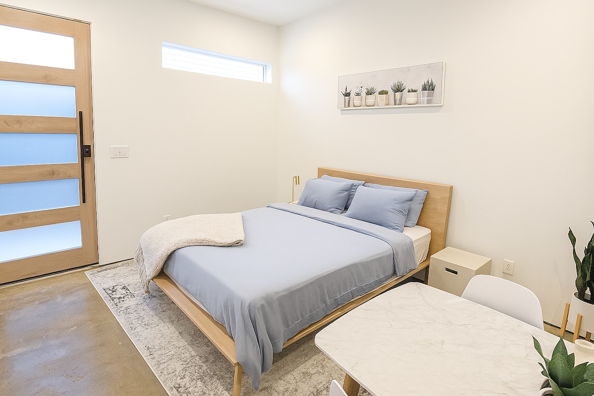 Saluda a tu elegante apartamento de un dormitorio, tu hogar lejos de casa. Inmediatamente te sentirás como en casa en tu unidad, con un televisor inteligente Samsung, Sonos, utensilios de cocina necesarios y ropa de cama deliciosamente cómoda. Esta unidad está equipada con todo lo necesario para que te mudes a tu unidad y te sientas como en casa de inmediato. Tenemos cómoda ropa de cama de calidad hotelera, muebles elegantes y ventanas gigantes que dejan entrar todo el sol que puedas pedir.