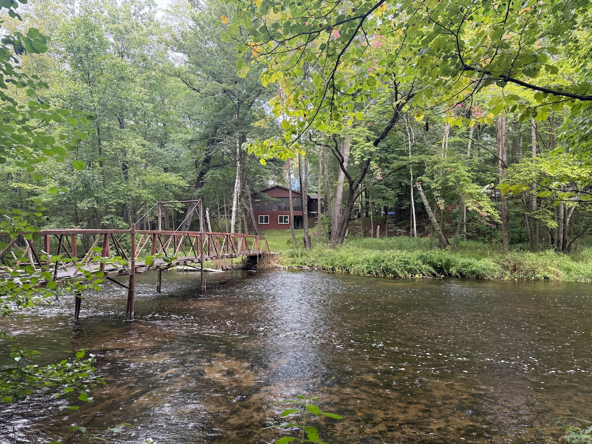 Escapada remota, tranquila, silenciosa y extremadamente privada a orillas de un río protegido, ¡a solo 1,5 horas de las Ciudades Gemelas! Incluso el hermoso paseo hasta allí es relajante. Entra en un mundo de paz y calma en lo profundo del bosque. Prepara deliciosas comidas en una cocina moderna de alta gama bien surtida, juega en el río, relájate en la sauna o disfruta de una hoguera. Esta no es una cabaña típica, sino un ecooasis espiritual con una mezcla ecléctica única de estética moderna, rústica, nativa americana y japonesa.